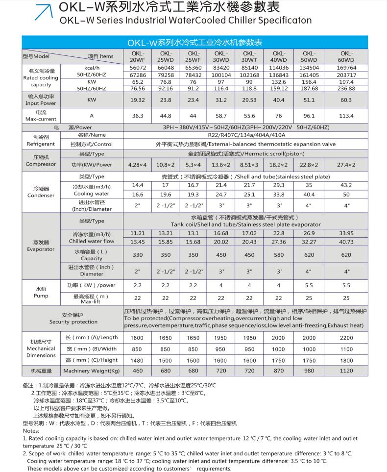 歐科隆制冷40匹水冷箱式冷水機是一款大功率工業制冷設備,專為重型制造和流程工業設計,核心特點如下: