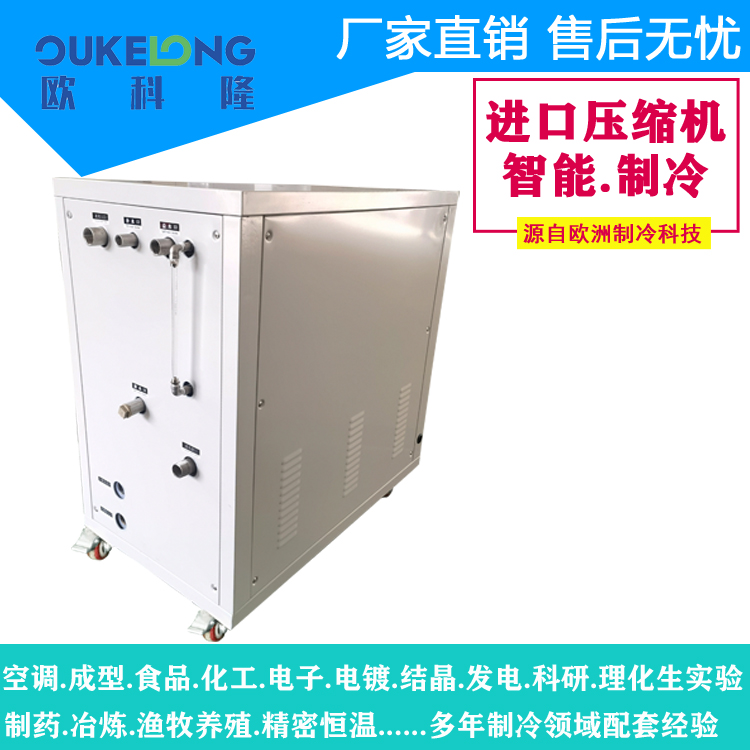 適用場景廣泛,可用于理化生實驗室、高校、電子、電鍍、食品等行業。歐科隆還提供整機免費保修一年、終身售后服務,配送方式有工廠送貨上門和物流送貨上門,交期方面,有庫存配件1 - 3日即可交貨。歐科隆3匹水冷箱式冷水機組以其卓越性能和優質服務,為各行業的制冷需求提供可靠保障。